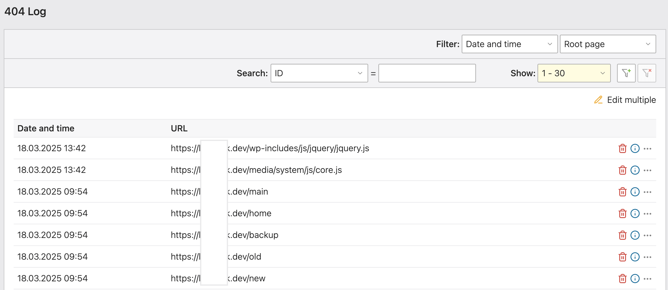 Jede aufgerufene, aber nicht vorhandene Seite wird automatisch in der Datenbank gespeichert – inklusive URL, Referer und Datum.